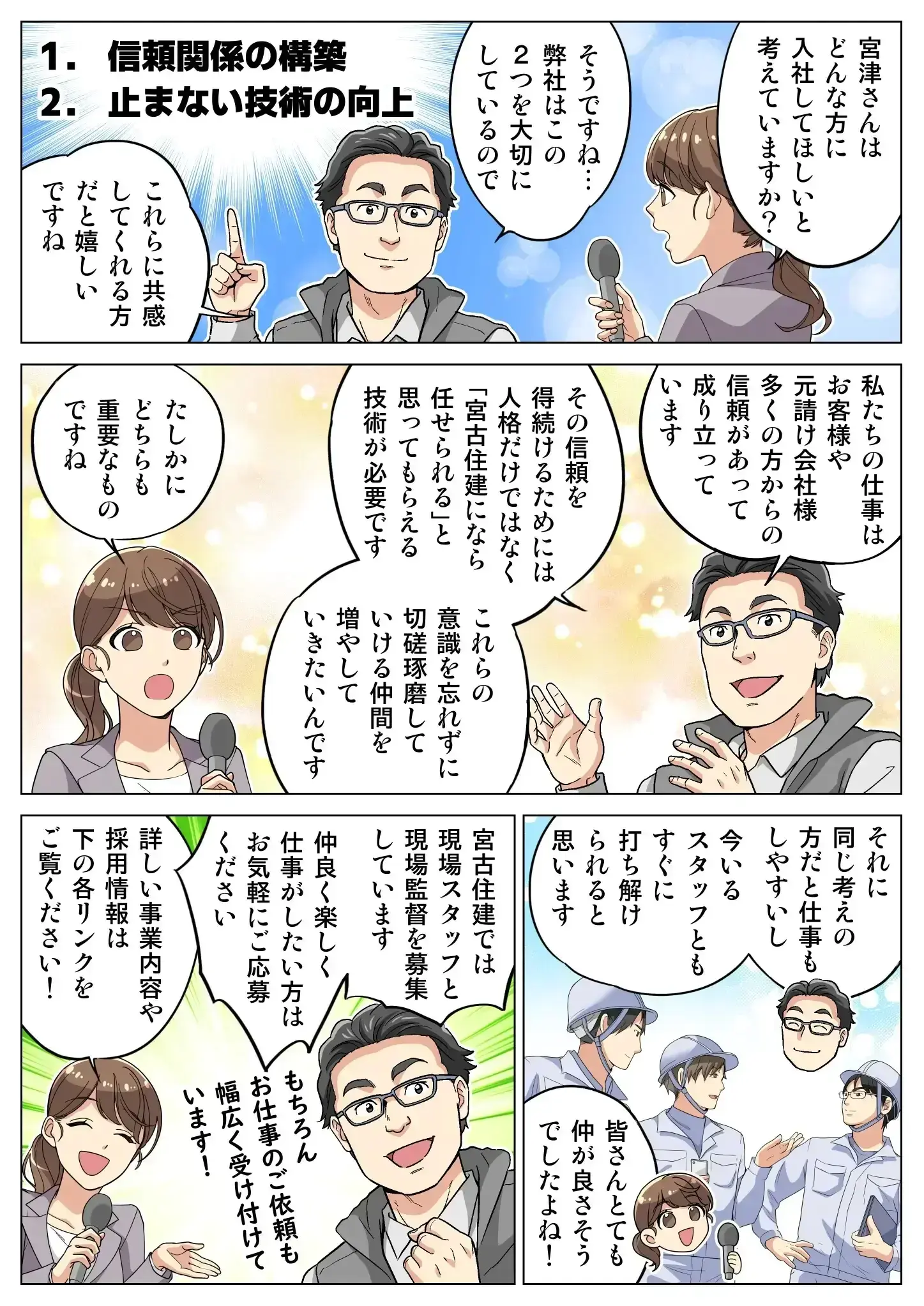 宮古住建でのキャリアをスタートしませんか?多彩なプロジェクトに挑戦し、自身の成長を実感できる環境です。募集要項はこちら。